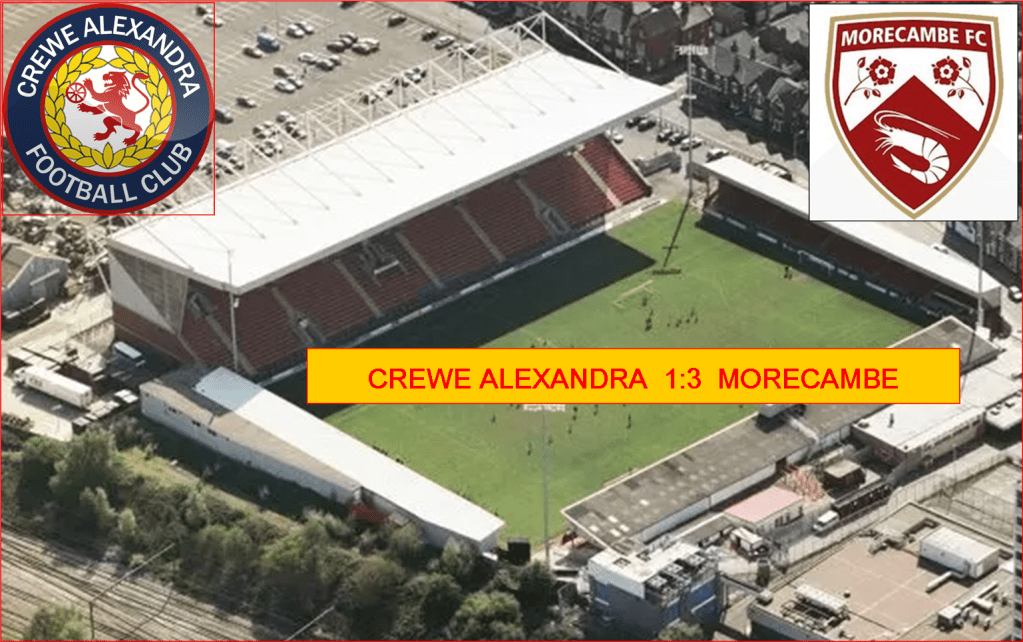 Morecambe were on the road again this evening to complete a fixture which was postponed due to international call-ups just over a week ago for the Lancashire team. Gresty Road has not been a Happy Hunting Ground for the Shrimps in recent years. In their first game of the 2018-19 season, Jim Bentley’s side were hammered here six-nil – and it could have been more. Under Derek Adams, Morecambe Old Boy Dave Artell’s side managed five goals without reply a year later. Altogether, the Railwaymen have beaten the Shrimps eight times in fourteen previous meetings and lost only three.