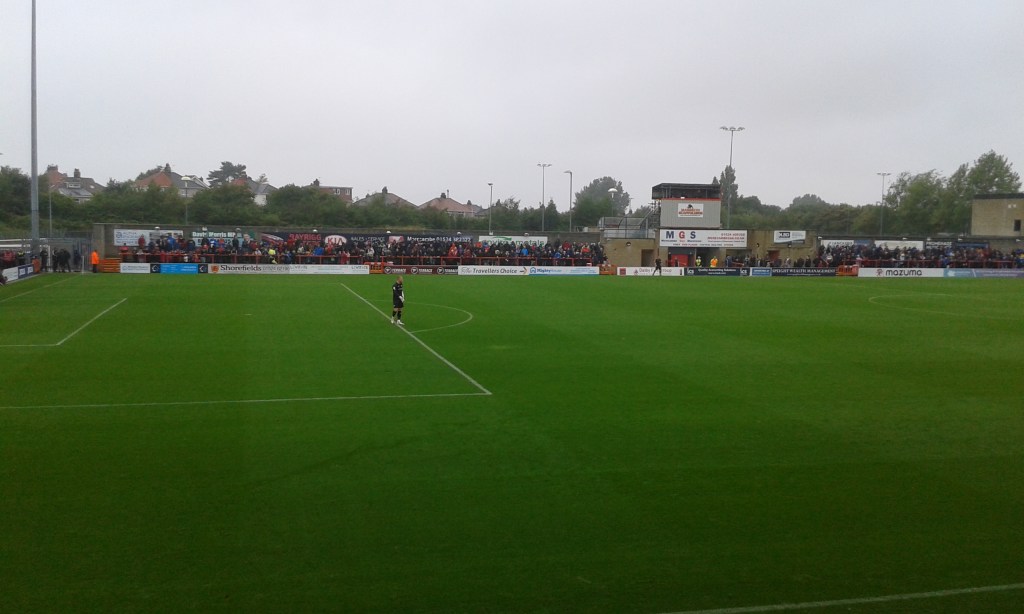 The second friendly Morecambe played was in Cheshire at Macclesfield FC on Saturday, July 9th. Our old pals from Northern Premier League days are now starting life all over again following appalling ownership issues which saw what was then an EFL club go bust almost two years ago. They are currently plying their trade in the lowly North West Counties League – two steps down the football pyramid even from Stalybridge Celtic.