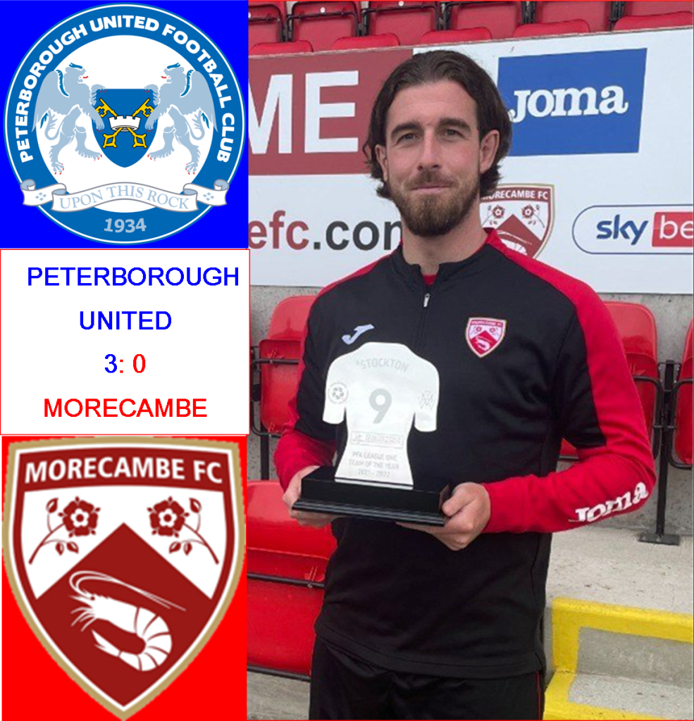 Elsewhere, MK Frauds were unable to win at Burton and will accompany the Shrimps back to League Two for next season. Cambridge United predictably beat hopeless Forest Green and managed to escape from the relegation pack right at the very last minute. Congratulations to them. Accrington also went down on a positive note, coming from behind at Oxford to win the game by the odd goal in three. Morecambe ended-up higher than Stanley in the final League One table on goal difference alone. At the top, Plymouth assured the champion’s crown by winning 1-3 at Port Vale and Ipswich’s draw 2-2 at Fleetwood saw them return to the Championship as well as Runners-Up. Well done to both of them.