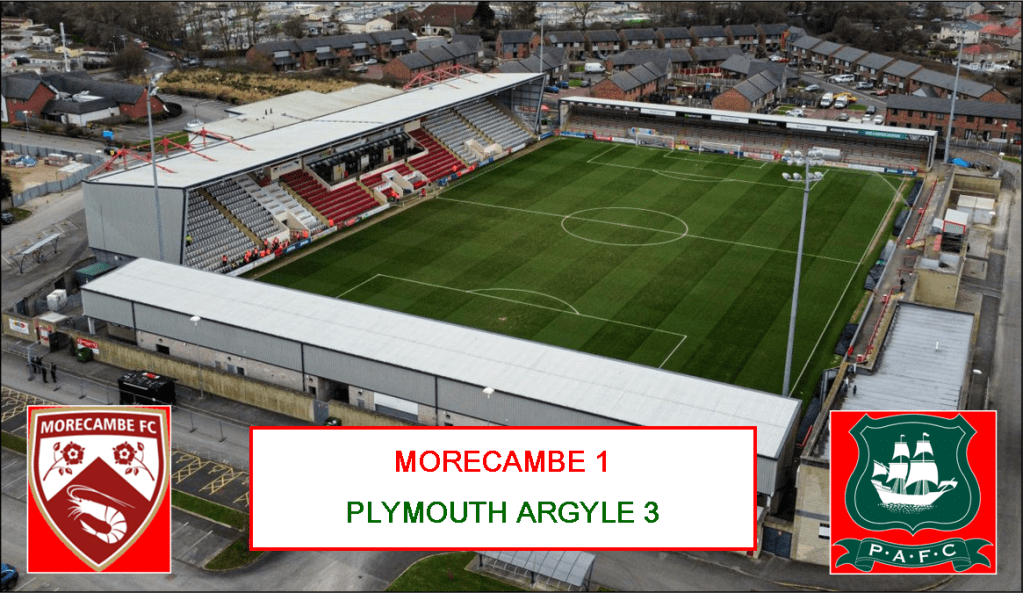 In one sentence, that sums-up Morecambe’s entire season: Too Little; Too Late. Today was just a step too far for them to take to rescue a campaign which seemed to be finished well over a month ago. The entire team has to be saluted, however, for the way they have managed to hang on until the very last moment: they are a credit to themselves. The almost 700 away support generously applauded the team and their Manager at the end but the sad fact of the matter is that Morecambe have today been relegated for the first time ever in their 103-year history.