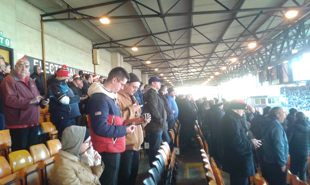 It was cold but sunny throughout the daylight hours as the match got under way on a really poor surface which started cutting-up right from the start of the game. Morecambe looked confident early doors and passed the ball quite well after winning the toss and playing towards their own supporters in the first half.
