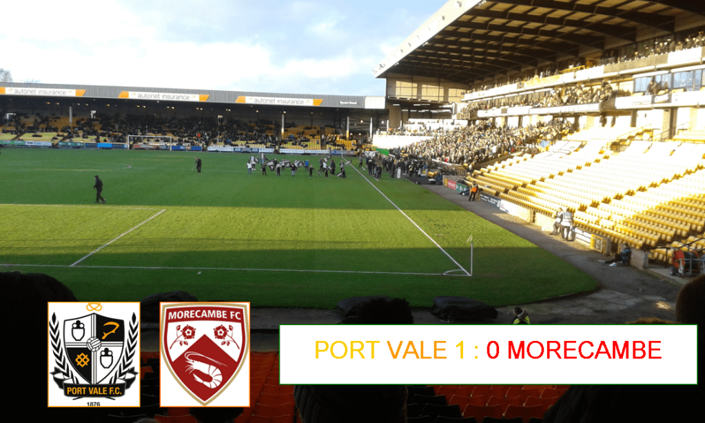 Morecambe travelled to the Midlands and Burslem today to face newly-promoted Port Vale for this first time in League One ever. In previous meetings in various competitions, they have played each other twenty times before. The Shrimps have won seven of these and lost nine. The Valiants were twelfth in the table, having won two and lost two of their last five League One matches. Away from their league campaign, Port were knocked-out of the Pizza trophy thing when they lost at Salford last Tuesday night 2-1. However, they won their last League One game at Plymouth 0-2, where the Shrimps were beaten by the odd goal in three last Saturday week.