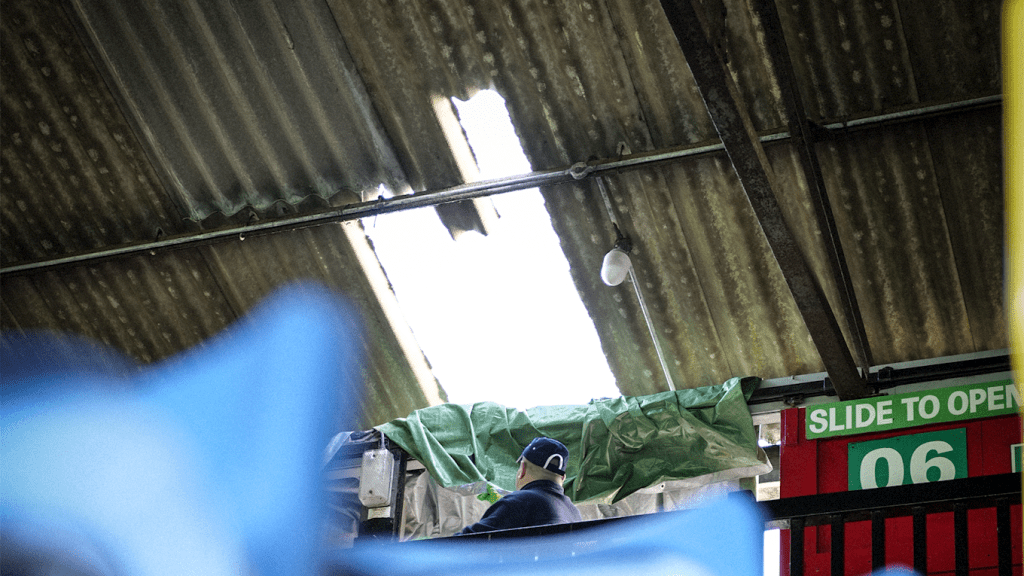 The Shrimps’ visit to Cambridge United scheduled for today was called-off yesterday due to wind damage to the Main Stand at the Abbey Stadium which has rendered it structurally unsafe. Here is a photo of the apparently catastrophic damage which has led to this decision, which some cynics suggest has more to do with damage to Amber Army players and a chance for them to recuperate, rather than the stadium itself: