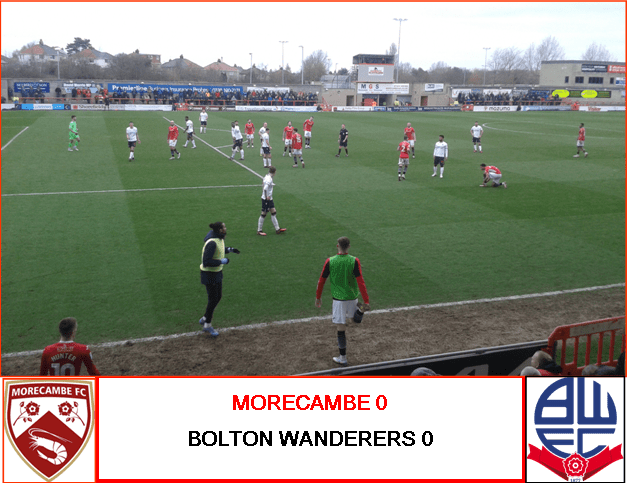 The Trotters arrived today in fourth position in League One. They have won three of their previous five League One games and lost two – most recently when they were beaten by three goals to one by Portsmouth at Fratton Park last Tuesday. Morecambe, on the other hand, have only won one of their last five league games and lost three of them. They were just above the Dead Zone in League One prior to the game – twentieth place. The Shrimps have never beaten Wanderers in five previous attempts to do so; drawing three and losing two of these.