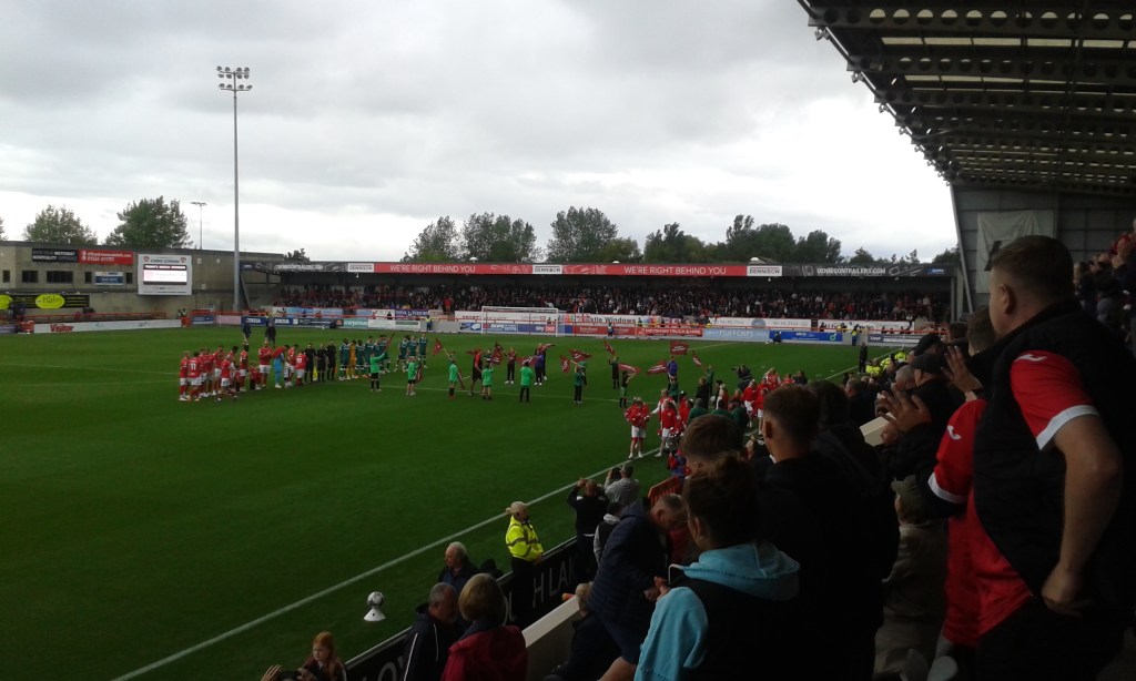 But as the half wore on, the visitors noticeably started to get more of the ball and play increasingly progressive football. Yann Songo’o was booked for a foul just over the half way line with 38 minutes gone but Walsall played-on and an excellent forty-yard pass was played forward. Danny Johnson got the wrong side of Jacob Bedeau and as Stuart Moore came off his goal-line to narrow the angle, Johnson equalised with an assured finish. After that, the away end suddenly woke up and they made a tremendous racket as all the momentum was with the visitors. (Having said that, Eli King set-up Michael Mellon with a good chance which he hooked over the bar near the end of the half.) Personally, though, I was praying for half-time and a chance for Derek to shake things up a bit. I had to wait longer than I anticipated – Mr Coy added-on six minutes at the end of the half – probably correctly.