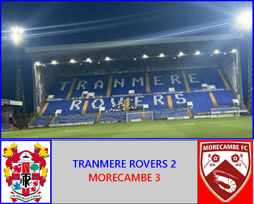 Morecambe made a nostalgic trip to the Wirral Peninsula today to visit Tranmere Rovers’ Prenton Park. It was nostalgic for two reasons. The last time the Shrimps played here, Derek Adams’ team won to put themselves just one match away from the Play-Off Final at Wembley and two games away from promotion to League One for the only time in their history. Secondly, for Morecambe boss Ged Brannan, this was a return to a former stomping ground at which he spent almost ten years as a player. He made 238 appearances for Rovers altogether (during which time he scored no less than twenty goals) before being transferred for a massive quarter of a million pounds to Manchester City in March 1997. Our Ged wondered – publicly – what sort of reception he would get here tonight after Morecambe’s relatively easy home win over seemingly doomed Sutton last Saturday. Inevitably, it would be mixed: many home supporters in the ground this evening wouldn’t have a clue who he is, given the quarter of a century which has elapsed since he was one of their own.