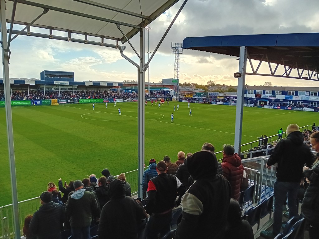 The weather in the Morecambe Bay area was really mixed today. In the morning, most places were sunny but regular downpours punctuated the afternoon. Although most of the game was played in bright sunshine, there was a gale blowing the entire time and a ferocious hail shower snapped at a lot of fans with its icy teeth as they left the ground afterwards.