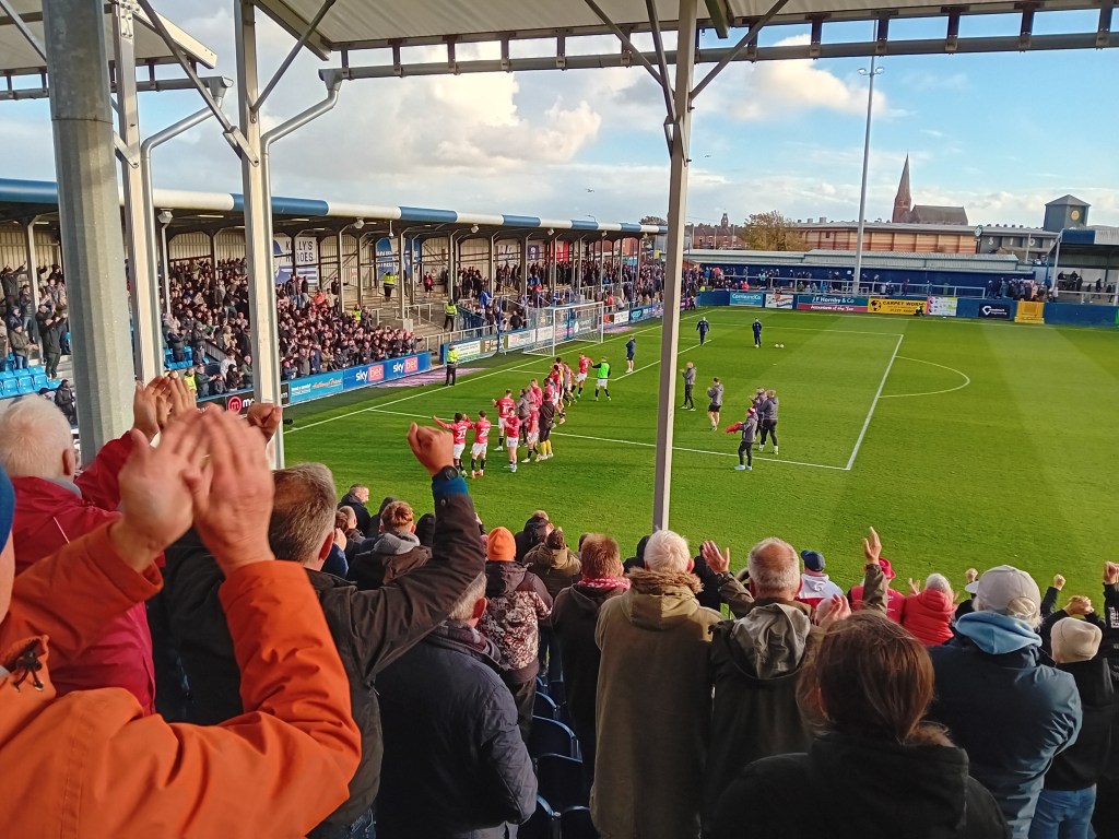 So that was it: Morecambe’s first league win of the season and very well deserved at that. The players and the Managerial staff returned the applause of the away supporters at the end of the match and the relief everybody felt was actually palpable.