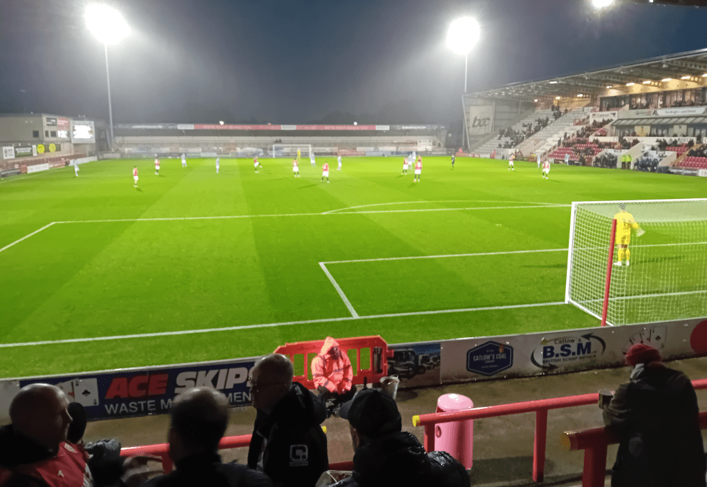 For the hosts, Rory Feely headed well over from a corner after four minutes. He then crossed for Katia Kouyaté with almost twenty minutes played, but the latter’s effort was tamely straight into the arms of ex-Barrow goalkeeper Stuart Moore. Ben Jackson took a shot from distance which whistled past the post with 27 minutes played but that was basically the sum total of a team who did not look like they are right at the top end of League Two at any time today.