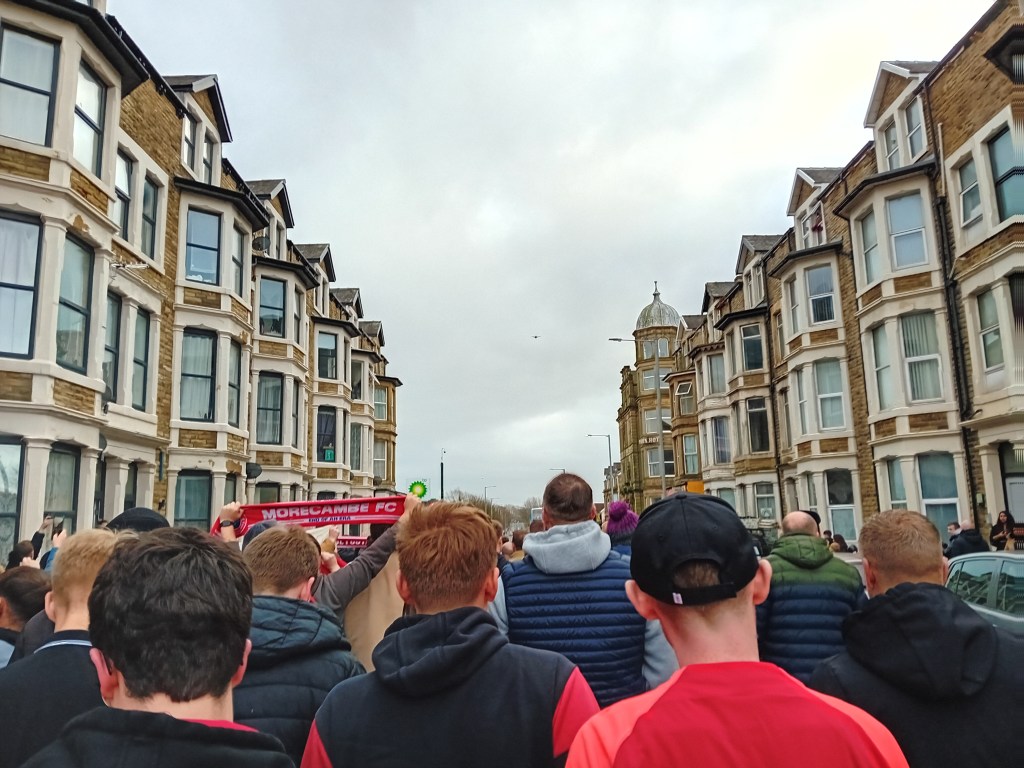 Before the game, there was a mass demonstration by Morecambe fans against the owner of the club – Jason Whittingham – and the constant foot-dragging by both himself and putative unknown purchasers of his controlling interest in the club.