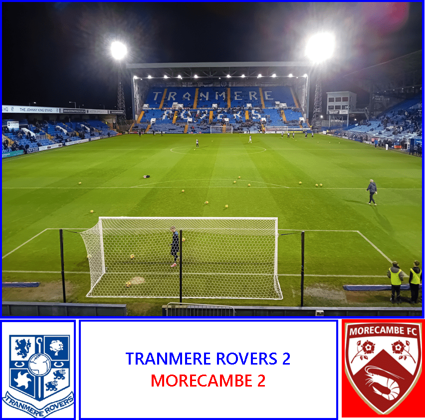 Morecambe travelled south to Merseyside today to face another club fearful of relegation from League Two this season: Tranmere Rovers. The Wirral club started this evening’s match just four points better off than them as they lay in twenty-first position in the table. Morecambe were bottom of the division again because Carlisle drew last Saturday as the Shrimps were beating Bradford City in the FA Cup in north Lancashire.