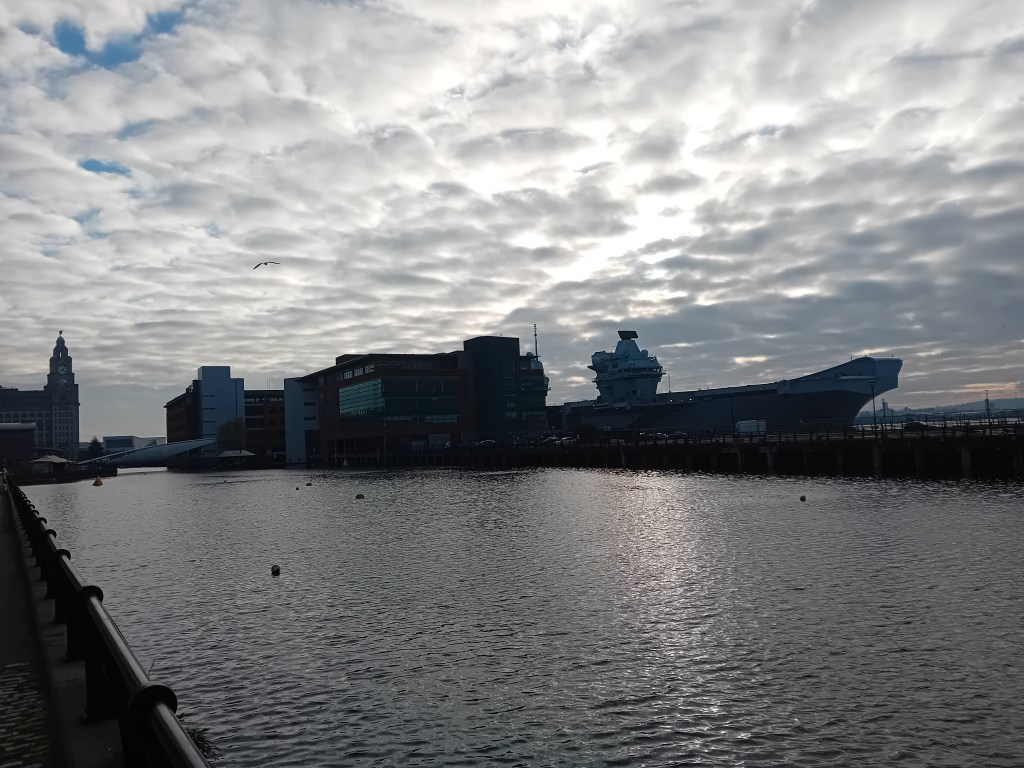 It is the 65,000 ton Prince of Wales – the largest Capital ship in the Royal Navy which was launched in 2017 after being built at Rosyth Dockyard on the Firth of Forth – one of Britain’s few remaining shipbuilding yards apart from Cammell-Laird at Birkenhead and Vickers/BAe Systems at Barrow. As you can see, it’s huge: 280 metres (980 feet) long – so you can barely miss it. Particularly with an Exocet missile. As we approached this floating annihilation machine, we were talking about the problems it has experienced in recent times. It broke-down on its Maiden Voyage when a mis-aligned propeller shaft actually broke. Since then, it has flooded twice during its first year’s service alone and has experienced severe electrical problems since. As we were speculating about whether or not it has actually suffered engine failure as well, a hard-hatted; yellow-vested worker from the Everton site passed by and clearly heard what we were saying. He turned and pointed towards the ship and – in an unmistakably strong Scouse accent – announced: