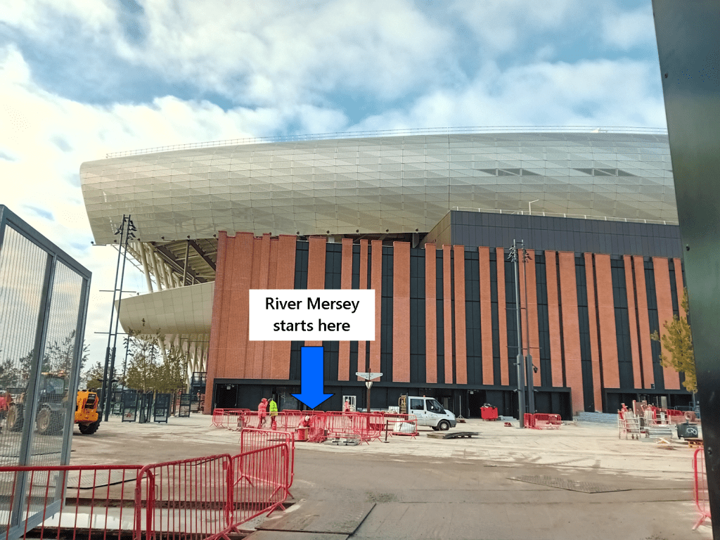 “The Mersey starts there!” she said. “It flows right under the pitch to the far side of the stadium and the original dock wall.”