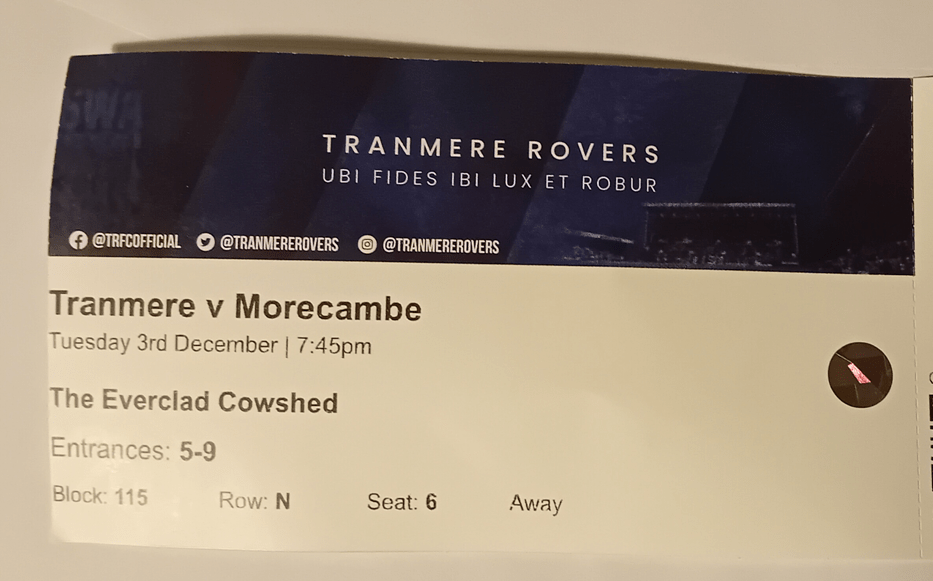 Last Tuesday – December 3rd 2024 – myself and three of my Morecambe-supporting pals set off on a visit to modern-day Tranmere and its current League Two team at their Prenton Park stadium. We did so – according to BBC Sport – in order to watch Southend United be entertained by Rovers in a League Two football match there. Here’s what `Auntie’ told us on December 4th: