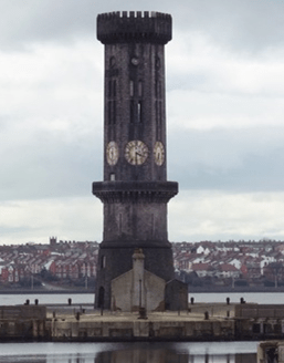 Stanley Dock actually has an outlet into the River Mersey. This is via a man-made island built of Scottish stone and designed by the same clever clogs who was the architect of the original Tobacco Warehouse: one Jesse Hartley. It is topped by the Victoria Tower, known to the locals as the “Dockers’ Clock” because its six clocks tell passing workers; road and river traffic precisely what the time is at any given hour of the day or night. When the sun goes down, the clock faces are illuminated and you can clearly see them even from the other side of the Mersey.