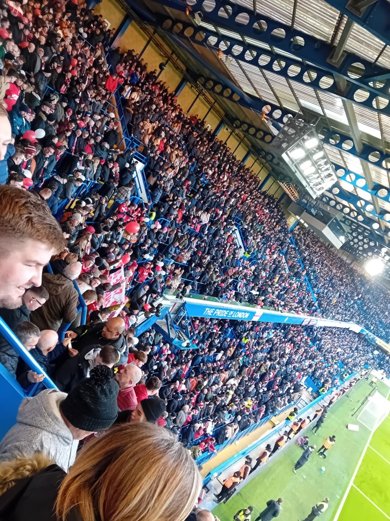 It was cold but sunny with little wind as the visitors kicked-off. From the start, the men in the red shirts did exactly what their Manager had predicted they would: kept a good shape; pressed the very strong team in the blue strip and played quite effectively on the break. Chelsea – perhaps a bit complacent or expecting a walk in the park – were sloppy and made a lot of mistakes. But the referee helped them by ignoring the fact that the ball had clearly run out of play on at least two occasions and allowing them to continue; giving them a corner when the last touch clearly came off a Chelsea player and then awarding them free-kicks when the fouls – some of them really quite bad – were obviously committed by the so-called superstars. Maybe he was star-struck himself…