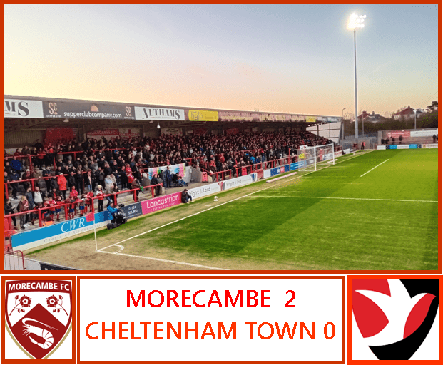 Two Robins have visited the coast of north-west Lancashire in the last few days. The first one – Swindon Town – returned to Wiltshire with nothing as Morecambe secured a double over them with the only goal of the game last Saturday. Tonight, Cheltenham Town’s Robins were the latest visitors to the Mazuma Mobile Arena to try and frustrate Morecambe’s frantic efforts to belatedly acquire sufficient points to start next season as a member of the EFL.