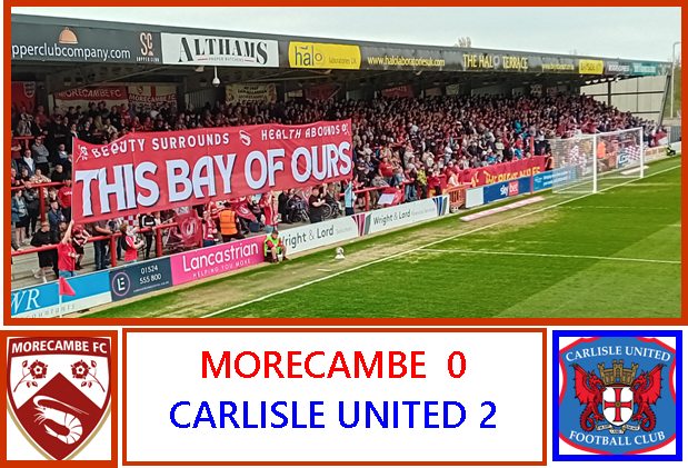 Morecambe at least tested the away goalkeeper a couple of times in the second half but they looked beaten from the minute they came onto the field. Yann Songo’o can’t be faulted in his endeavours to lead the team by example on his ageing legs. Tom White never gives up and is a role-model to his team-mates in both attitude and determination. Adam Lewis was poor today: perhaps over-hyped by the occasion: his aimless long balls into Carlisle territory time and again went to men in blue more often than not and his set piece kicks were unusually poor. But nobody can doubt his commitment to the cause.