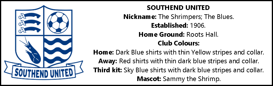 Southend–on-Sea’s current major football club was founded in May 1906 and initially played in the Southern League Division Two. United immediately won this but had to do so again in their second year of existence before they were allowed to progress to Division One. (Which, even if it doesn’t prove anything else, is evidence that Promotion – unlike, say Gravity – is an invention, not a discovery…) In 1920, though, they were elected to the new Football League Third Division South and remained in it when the North and South Divisions were unified during 1958.
