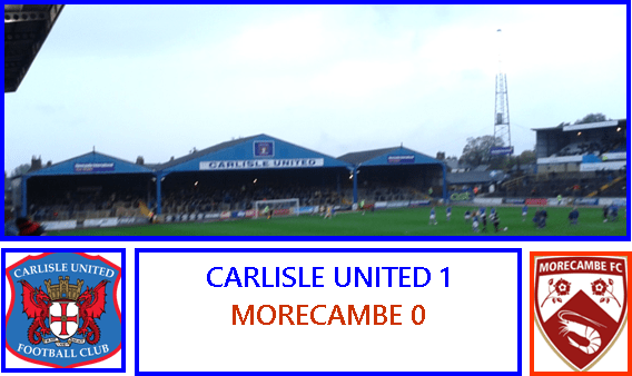 The visitors asked nearly all the questions for the first forty-five minutes. The natives grew restless at times as Morecambe pressed United and repeatedly attacked down both flanks. Having said that, United had the first strike on goal as Jordan Jones forced Jamal Blackman to tip his long-range shot over the bar with ten minutes played. The chance was created as Skipper Alie Sesay gave the ball away with a poor pass from the centre of the away defence straight to the Carlisle player: a bad habit he really needs to address because he keeps on doing it. Jack Nolan immediately got away on the Morecambe right but sent a hopeless shot way off target. Home stopper Gabriel Breeze was forced to gather a number of crosses, mostly from the Shrimps’ right, where Emmerson Sutton was active all half. The Carlisle goalkeeper then saved a shot from Ben Tollitt with a quarter of an hour played. But a warning of things to come arrived after 22 minutes when Regan Linney sent a cross from the United left over to Luke Armstrong, who drew an excellent save from Blackman at the cost of a corner. Up the other end, Sutton did really well to reach a long pass upfield on the right shortly afterwards. His low cross into the centre had Breeze scrabbling around on the ground trying to deal with the ball as Rolando Aarons looked on but made no serious attempt to get to it – but Blues’ defenders managed to clear the danger in any case. Emmerson was again involved in the best chance of the game so far. He forced the Carlisle goalkeeper to make an excellent save after 36 minutes and you would expect Tollitt to wallop the rebound home but he inexplicably hit the ball over the bar instead when well placed and unmarked. And so it went on: Morecambe asking almost all of the questions and enjoying the bulk of the possession. Until it all went wrong in injury time…