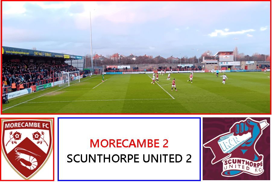 Moving quickly on, however – Mr Momi and I were both there to watch Morecambe entertain Scunthorpe United today.