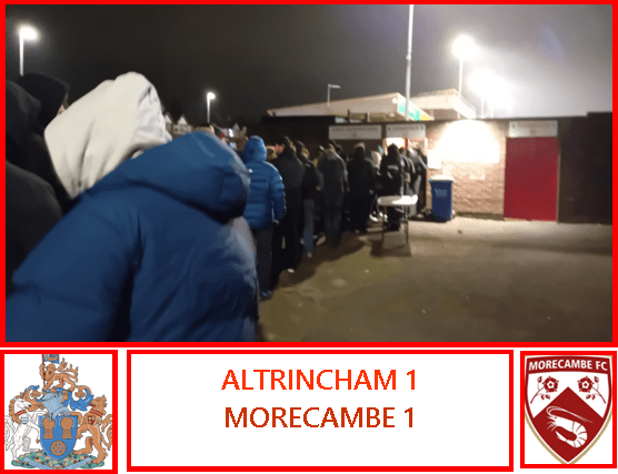Morecambe entered a new era when they returned to Moss Lane in Altrincham tonight to complete the fixture which was called-off almost literally at the last minute on Saturday, 3rd January last. This is what I wrote about the imminent clash then: