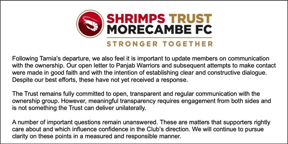 I think he owes us an explanation as to what on earth he is doing – and has already done – to our club. Then, I think it’s reasonable for him to explain to all Morecambe fans what the Panjab Warriors‘ plans are for the future.