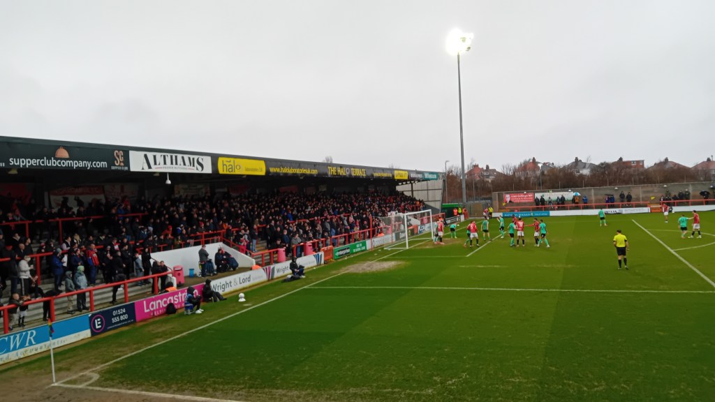 So that was it: four goals scored; a clean sheet for a very welcome change and a really convincing performance from Morecambe for one of the few times we have seen any such thing this season. The win pushed the Shrimps into twenty-second position in the National League table at the end of the game. With the two clubs beneath them playing each other later in the evening and Gateshead perhaps surprisingly winning 1-2 at Truro, they may not have stayed there. The Cornwall club are now rock-bottom of the NL with Gateshead one point above them and a single point behind us. But both clubs have games in hand over the Shrimps: the Heed two and City one. So Morecambe’s match at Gateshead next Wednesday takes on an even greater significance.