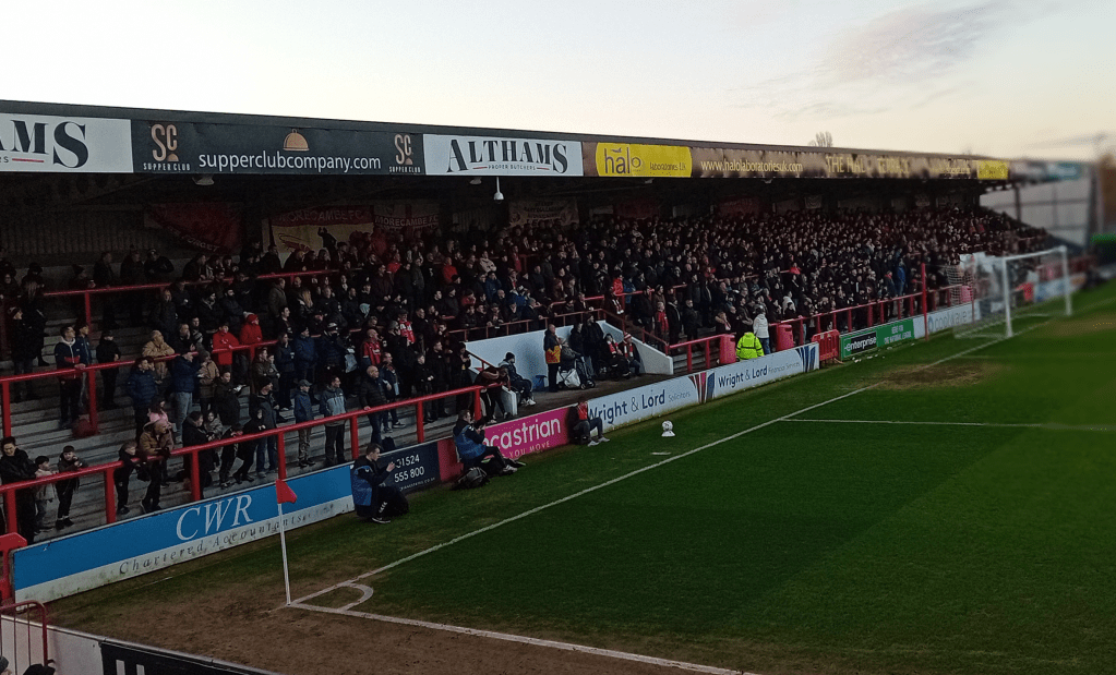 But then – as the away end had become as quiet as the grave – Ollie Banks broke Morecambe hearts with a tremendous volley past a helpless Jamal Blackman with almost the last kick of the game in the ninety-ninth minute to steal the match and all three points with it.