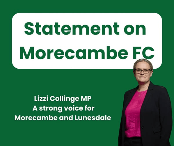 “I am concerned to hear the news that an embargo has been placed on Morecambe FC due to non-compliance with National League Financial Regulations.