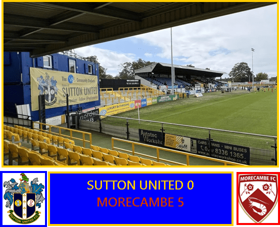 So, as Sutton were booed off by some of the home fans, Morecambe went back to the Dressing Rooms in an unprecedented position in recent times. Four nil up and facing just ten men in the second half.
