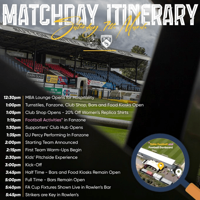 I can’t tell you what Morecambe Manager Jim Bentley said prior to the game because neither the club’s website not the usual sources have listed any interview with him. Shame – what Big Jim has to say is always fascinating to listen to and the contrast with the stage-managed bore fests with Ashvir in the past are like chalk and cheese. However, the Shrimps had good news before the game even started. Brackley Town – just six points above us in the first safe position above the relegation berths – were beaten 5-3 at Boreham Wood – after pulling it back from 3-0 down at half time to make it 3-3 at one point – to make it five league defeats in a row under new Manager Andy Whing. Less good news for Jimbo was the absence from his squad of Lewis Payne following his sending-off last Tuesday and Miguel Azeez, who is injured. Timothy Akindileni and Paul Lewis replaced them.