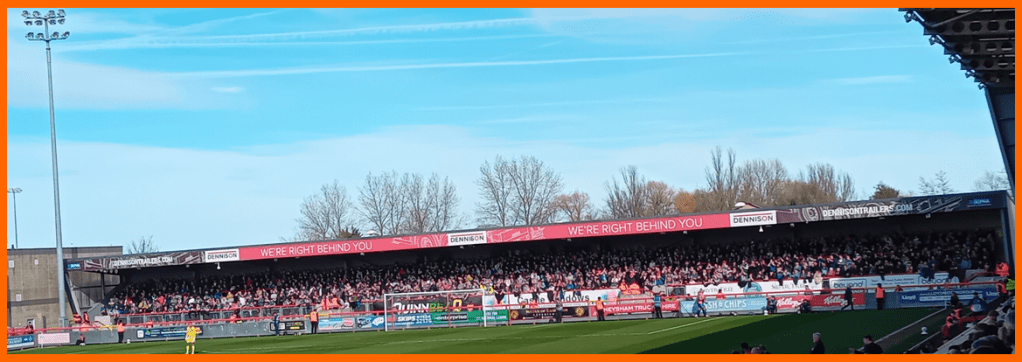 The away contingent became even louder. But they were reduced to silence again until the end of the game when Morecambe – playing on the break more often than not – equalised. In the eighty-second minute.